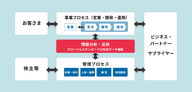 データドリブン経営実現に向けたデータ活用の推進も進めています。たとえば従来、実績系データのみでしかモニタリングできなかった不採算案件の兆候を、計画系データなどその他の社内データともひもづけて精緻に検知し、さらなる不採算案件の抑制をはかることが可能になる見込みです。