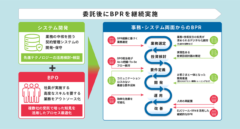 【事例②図】「事務(BPO)」「システム」両面からのBPR