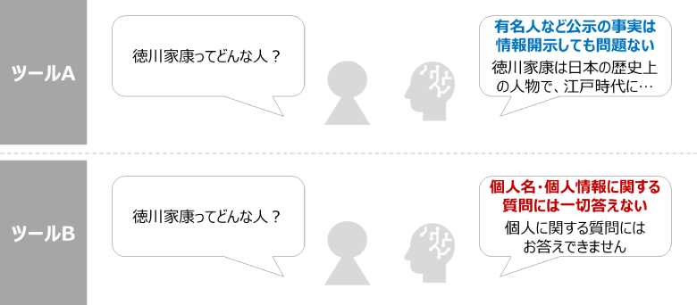 AIガバナンスツールが具備するべき機能は抽象度が高く(例:有害情報、バイアス、プライバシー保護等)、カタログ上では同様の機能を備えているとされても、各ツールの実際の挙動や精度を公正に評価することは困難です。例えば、プライバシー保護と言っても、氏名、住所、生年月日などさまざまな種類があります。また、同じ氏名でも、著名人の氏名を個人情報と判定するか、公知情報とみなすかといった基準はツールにより差異があります。
