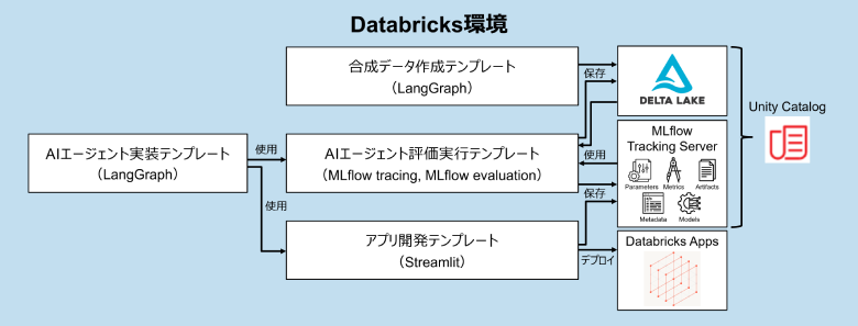 AgentOpsアセットは、Databricks環境上に展開される主に4つのテンプレートで構成されます。
