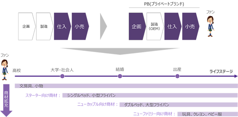 この事例は、既存アセット(店舗・販売網)を起点にブランド事業を構築し、さらにそこで得た新たな無形資産(ファン)を次なる成長の足掛かりとした好例であり、大企業ならではのアセット活用型事業開発の典型と言えます。
