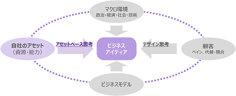 アセットベース思考では、自社資産を起点とすることが多いのですが、顧客視点との統合は不可欠です。顧客ニーズ、代替手段、市場受容性などを的確に捉え、自社の「できること」と顧客の「求めること」の接点を創出する設計が求められます。