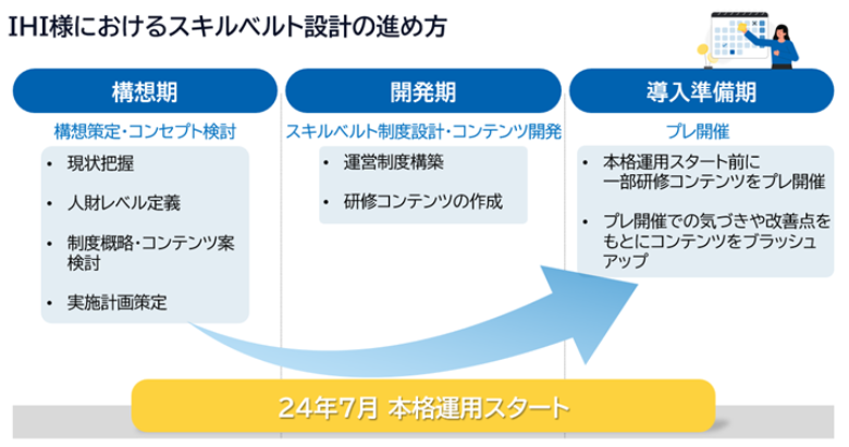 NTTデータは、IHIのスキルベルト制度設計を3つのフェーズに分けて支援した。