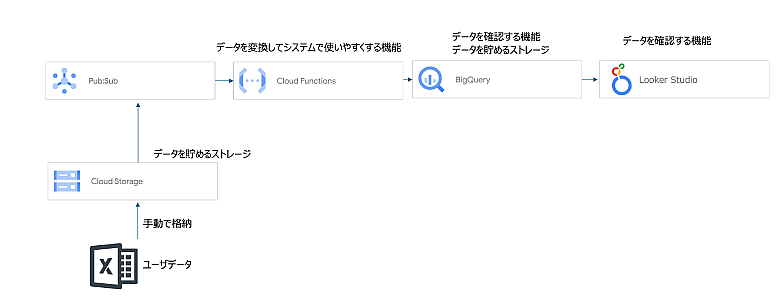 今回はお客さまとして初の試みである、マーケティングデータを利活用するシステムを、Google Cloud (※2)サービスで構築するユースケースを例に説明します。
