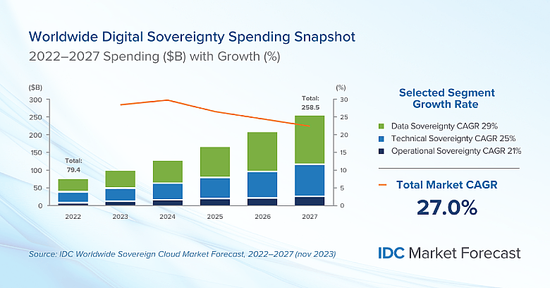 図1:「IDC Forecasts Worldwide Sovereign Cloud Spending to Reach More Than $250 Billion in 2027」(2023年12月13日)よりhttps://my.idc.com/getdoc.jsp?containerId=prEUR251542423