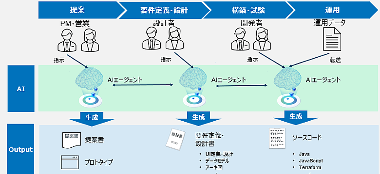 各工程の担当者とAIエージェントが協働し、設計書やコーディング、テスト項目などを作成・実行します。この未来が実現すれば、開発者はより創造的なタスクに専念できるようになるでしょう。