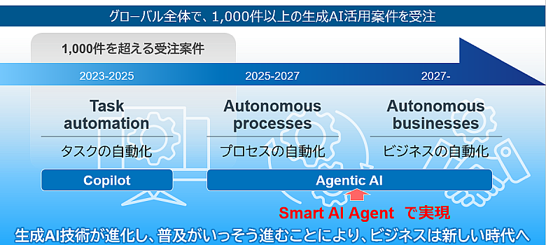 繰り返しになりますが、NTTデータでは、2027年までにAIエージェントは「タスクの自動化」から「プロセスの自動化」、そして「ビジネスの自動化」へと段階的に進化していくと予測しています。