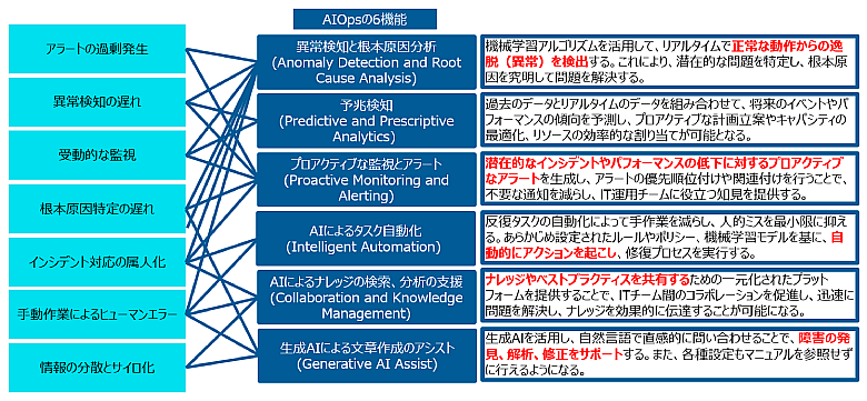 図2:IT運用の課題に対するAIOps6機能のマッピング