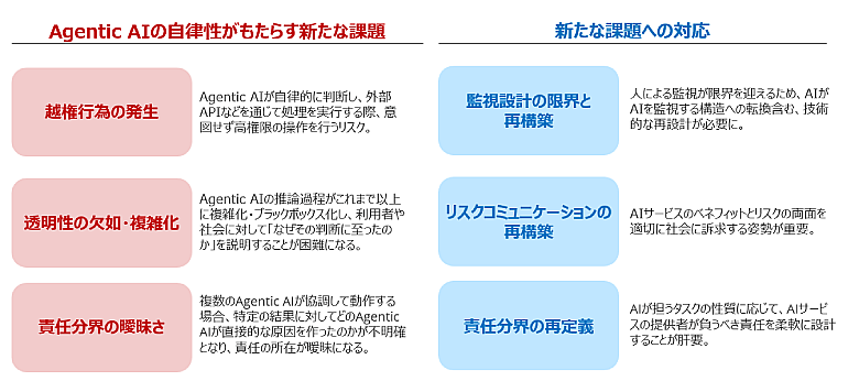 図1:Agentic AIの自律性がもたらす新たな課題と対応