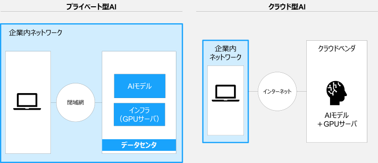 図2:プライベート型AIとクラウド型AIの構成