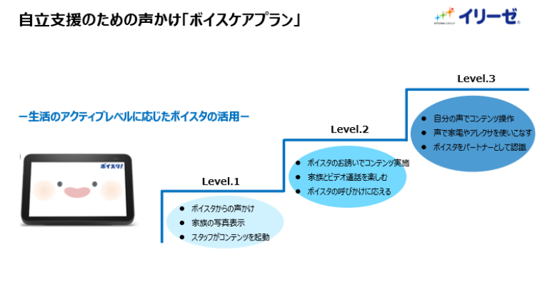 『ボイスタ!』は、入居者の“声”による会話や操作を通じて、生活支援や心の交流を促すコミュニケーションプラットフォームである。話しかけるだけで家電の操作や情報提供が行えるほか、“声かけ”を中心に入居者の自立支援を行うことで、スタッフや家族とのつながりを保ち、安心して自分らしい生活を続けられる環境づくりを目指している。