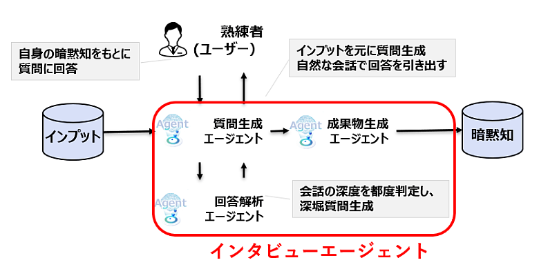 図1:インタビューエージェント×暗黙知抽出のアプローチ
