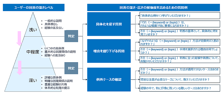 図4:ユーザーの回答の深さレベルと回答の解像度を深めるための質問例
