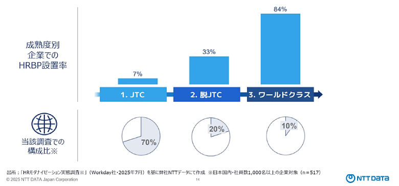 さらに、別の調査(2025年)(※2)によると、戦略人事を担うHRBP(Human Resource Business Partner)の設置率は、日本的な旧来型企業でたったの7%と進んでいません。