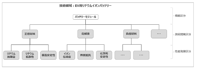 図2:EV用リチウムイオンバッテリーを技術領域とする技術の階層的把握
