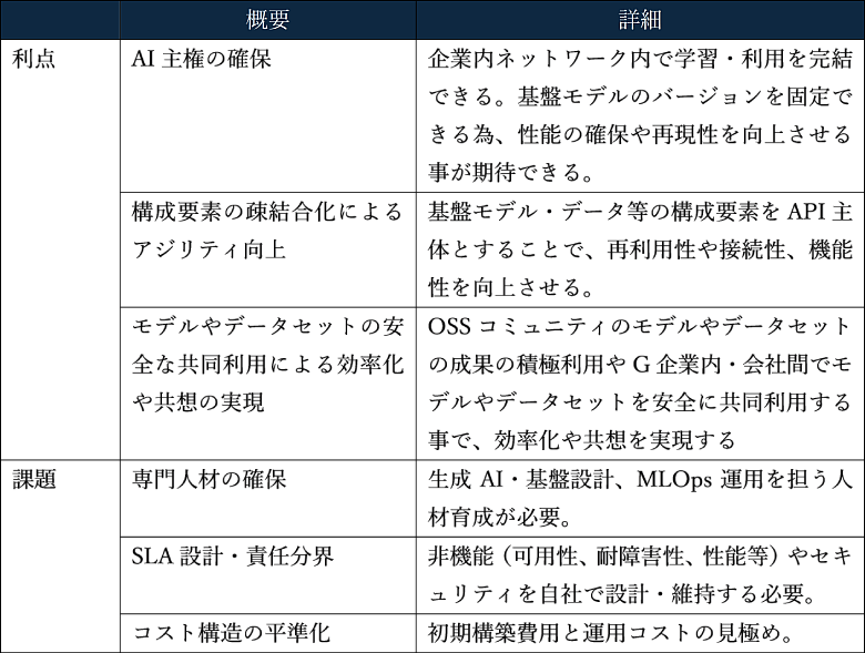 生成AIの進化が続くなか、自社運用型AIへの投資は、単なるコスト削減策ではなく、生成AIを利用した競争力の源泉となる可能性があります。