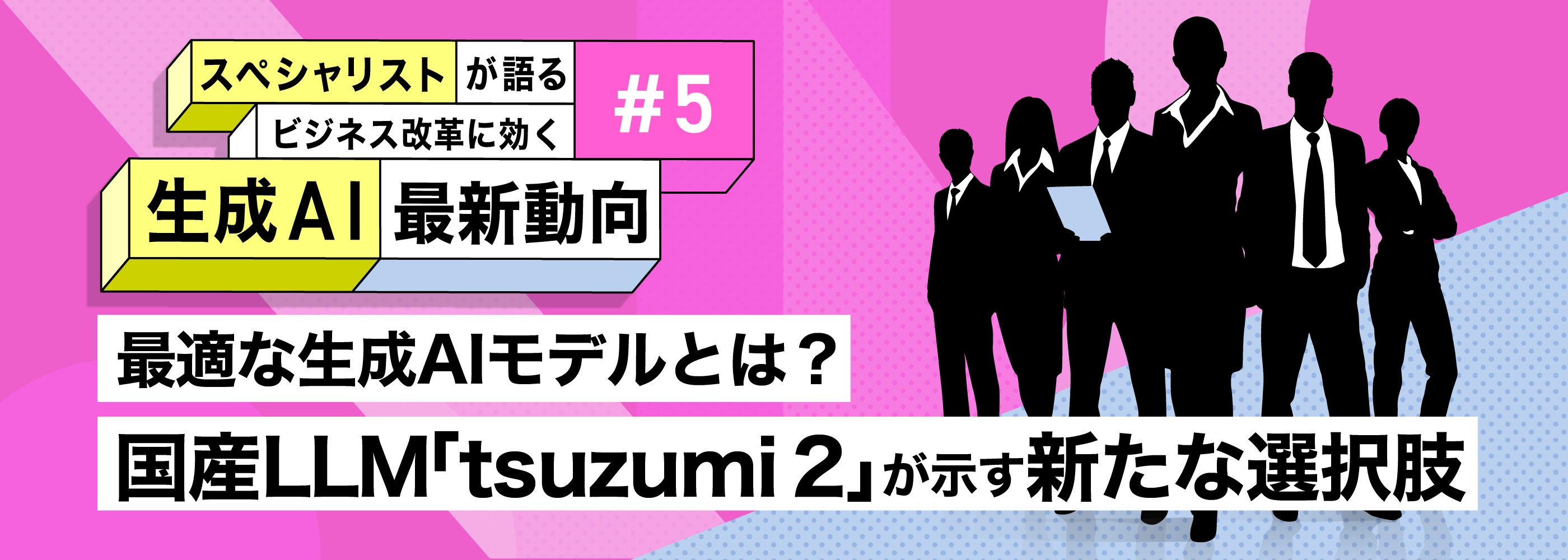 前章で整理した3つの観点に照らして見ると、tsuzumi 2の位置づけがより明確になります。