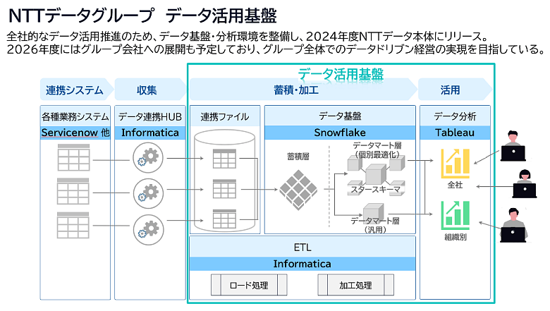 また、2026年度には、NTTデータ国内グループ会社にも展開することで、グループ横断のデータ活用へと進化させようとしています。