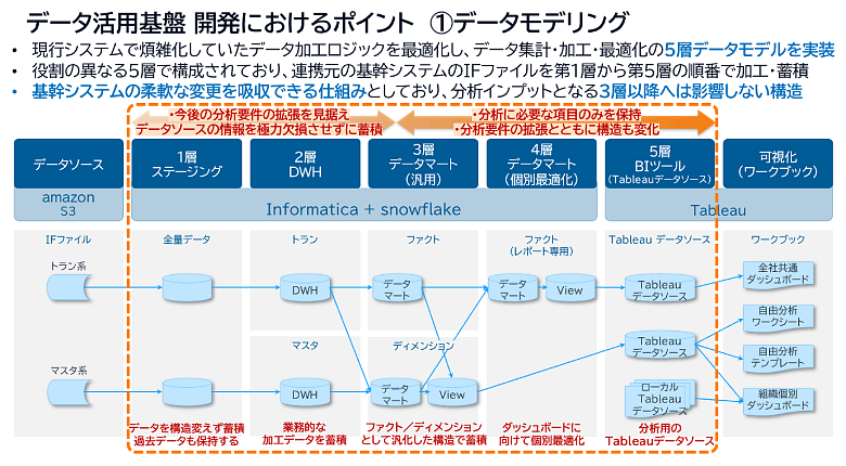 そして5層では、Tableau上のワークブックから直接参照される最終的なデータソースが格納されています。