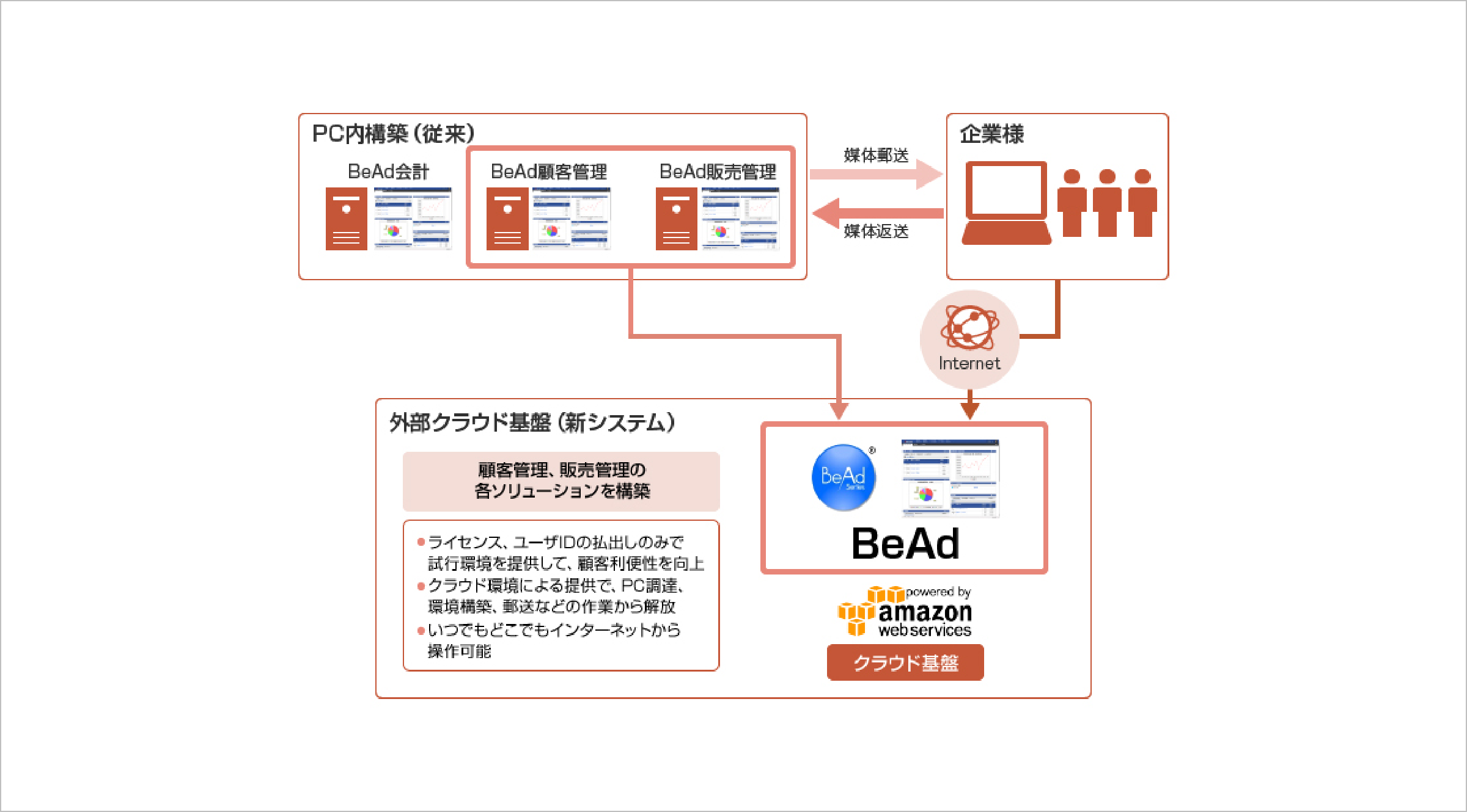 これにより、企業からBeAdの試行要望があった際、ライセンスとユーザIDなどの貸与のみで、企業に試行環境を提供することが可能になります。