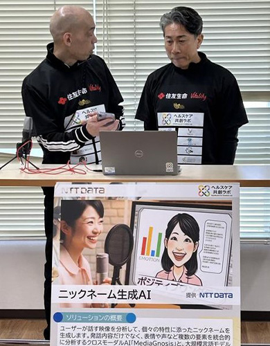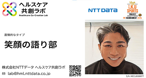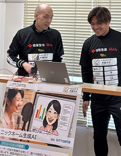 住友生命 Vitality Presents I.K.U. Sports Project PK Tournament2025に協賛したヘルスケア共創ラボ(以下、ラボ)は、2025年2月15日に開催されたEAST大会当日、移動ラボを実施。今回は30秒話しかけるだけで生成AIがニックネームと似顔絵を作り出す「kagami」を北広場にて展示しました。