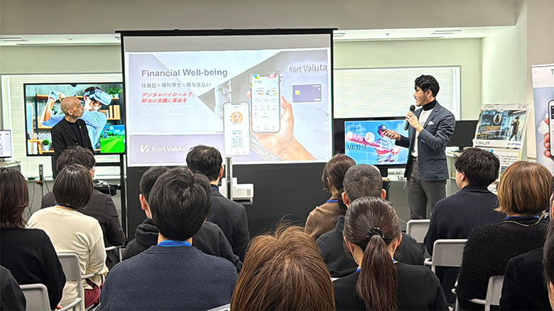 株式会社Kort Valuta 田中 仁 様より、同社の事業内容、2025年2月3日に同社のプレスリリースに掲載された同社のTwooCa Ringを使ったラボとの実証実験のご紹介、および、ラボとの今後のビジネス展開構想が紹介されました。