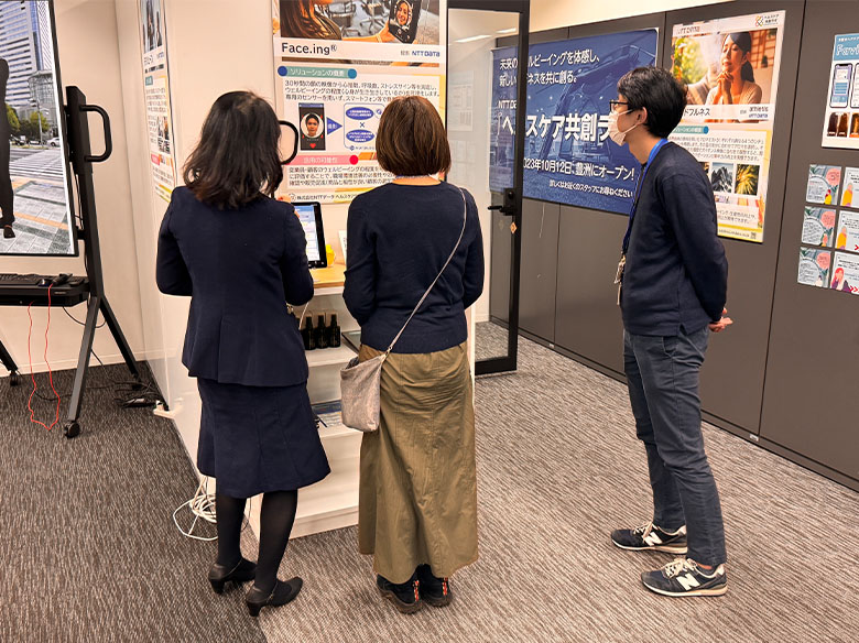 技術体験タイムには、ヘルスケア共創ラボに展示しているソリューションを皆様に体験いただきつつ、参加者同士の交流が図られました。
