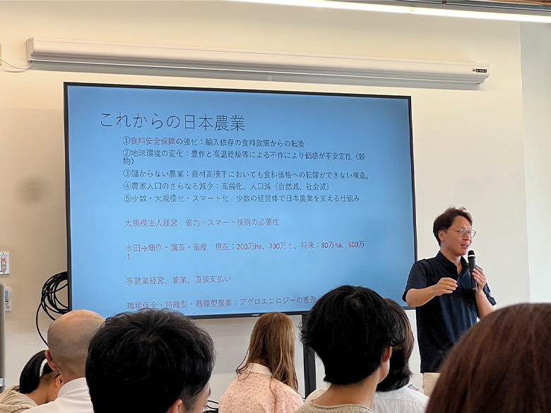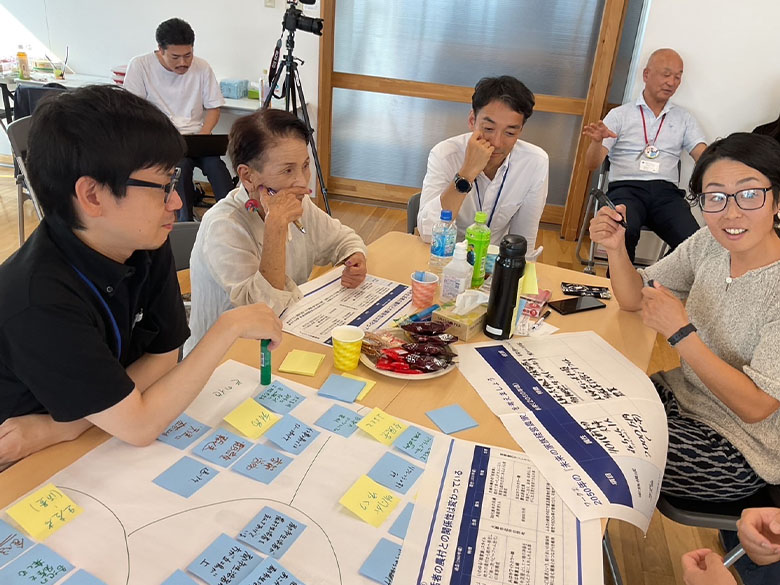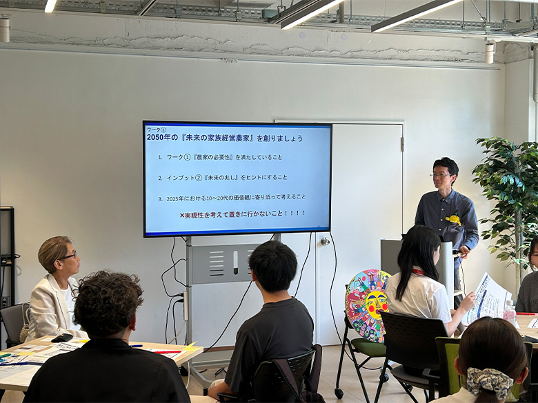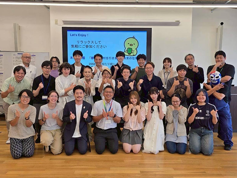 当日はLumiUnion(田中咲帆さん、雪月心愛さん)をゲストに迎え、福島大学F-REI食農チーム代表の小山教授にも講演していただき、「都市と農村を行き来する未来の仕事」をテーマにディスカッションを行いました。浪江町の町民に加え、大企業から浪江町に出向中の方、未来社会の当事者となる福島大学の学生など、多様な参加者で意見交換し、浪江町に関係する生活者の2050年の働き方について考えを巡らせました。