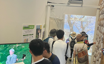 ブース内では、イマーシブ動画「SATOYAMA」(福島の里山映像)、AI養老先生との対話体験、そしてポスター展示を通じて、「拡張地域社会」の世界観を発信しました。