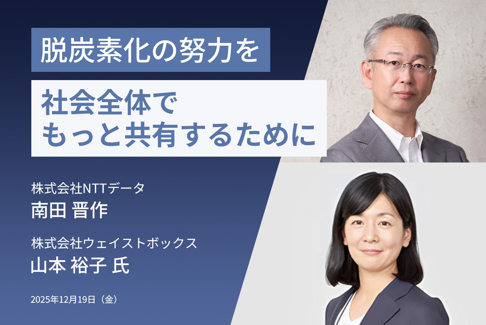 NTTグループにて法人営業や再エネ関連事業を担当し、PPAサービスや排出量削減モデルの構築に従事。現在はNTTデータにてGHG可視化プラットフォーム「C-Turtle®」の営業・コンサルを担当。データ利活用を通じ、企業のGX推進と脱炭素経営を幅広く支援している。